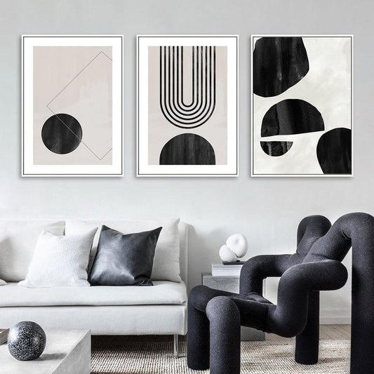 • Tableau Scandinave Abstrait Noir et Blanc Gris