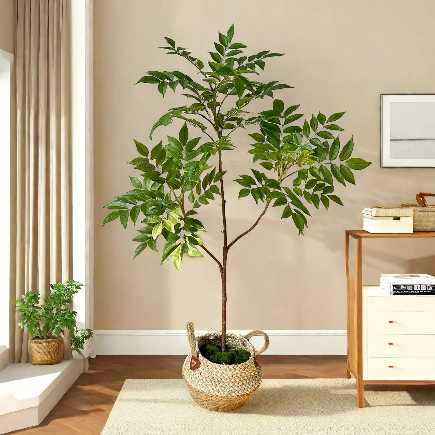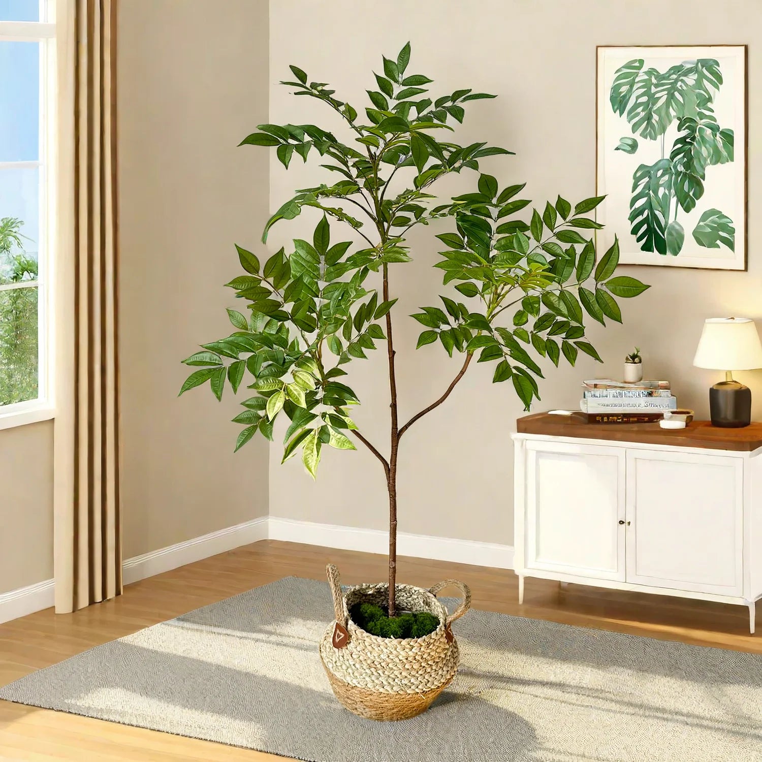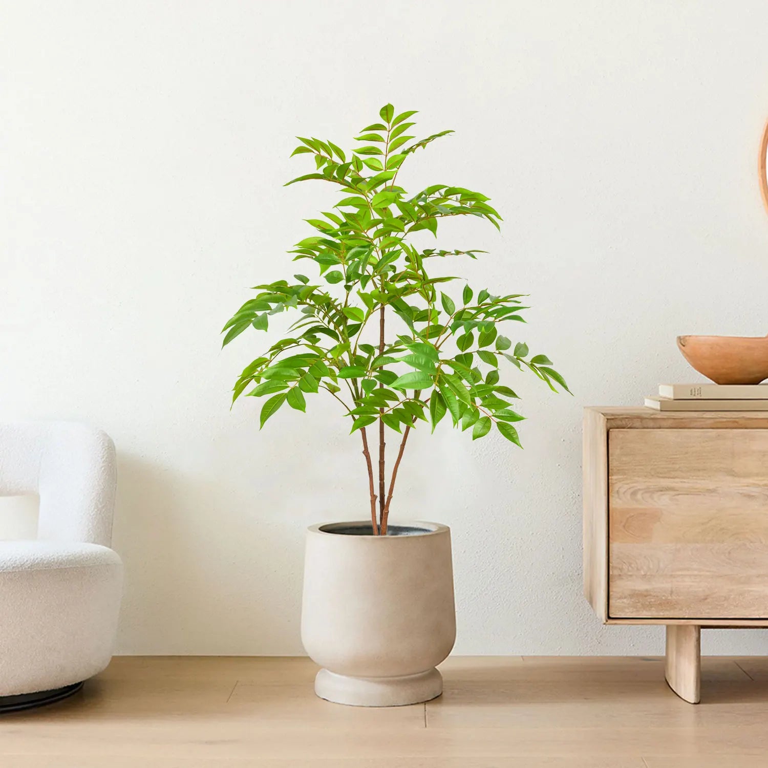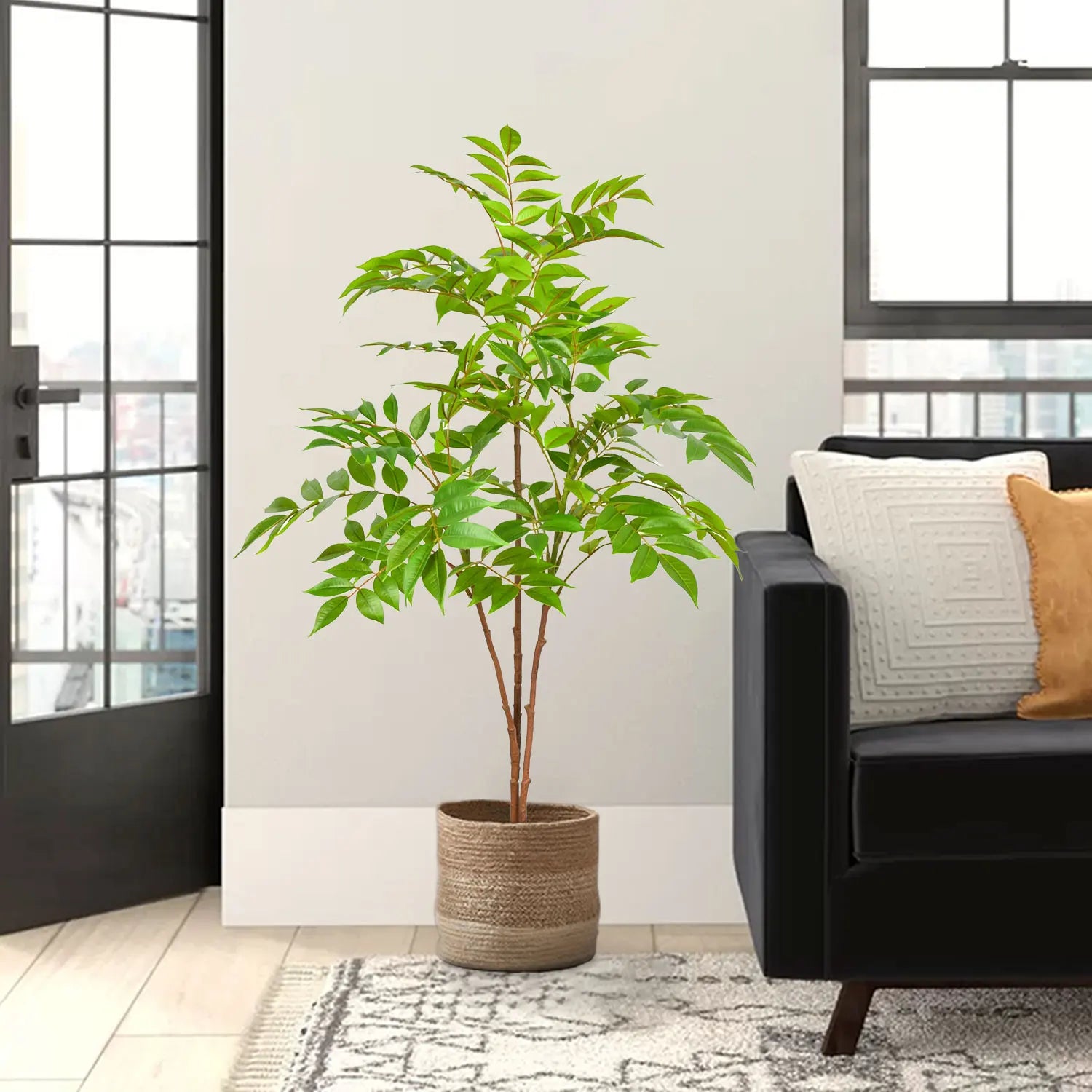 Chaque plante est fabriquée à partir de matériaux synthétiques de haute qualité pour un réalisme et une durabilité optimaux, gardant votre espace vert et frais toute l'année. Leur grande taille les rend particulièrement adaptés aux grands espaces et ajoute de la vie et de la couleur sans l'encombrement de plusieurs petits pots.
